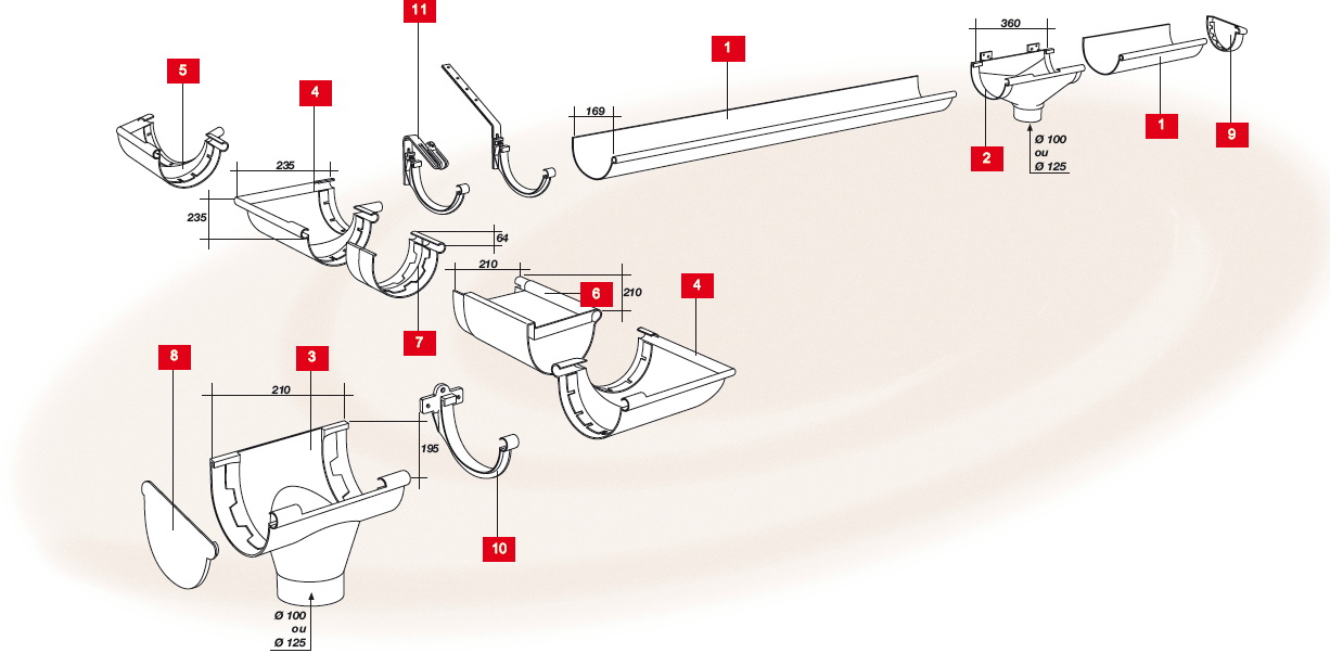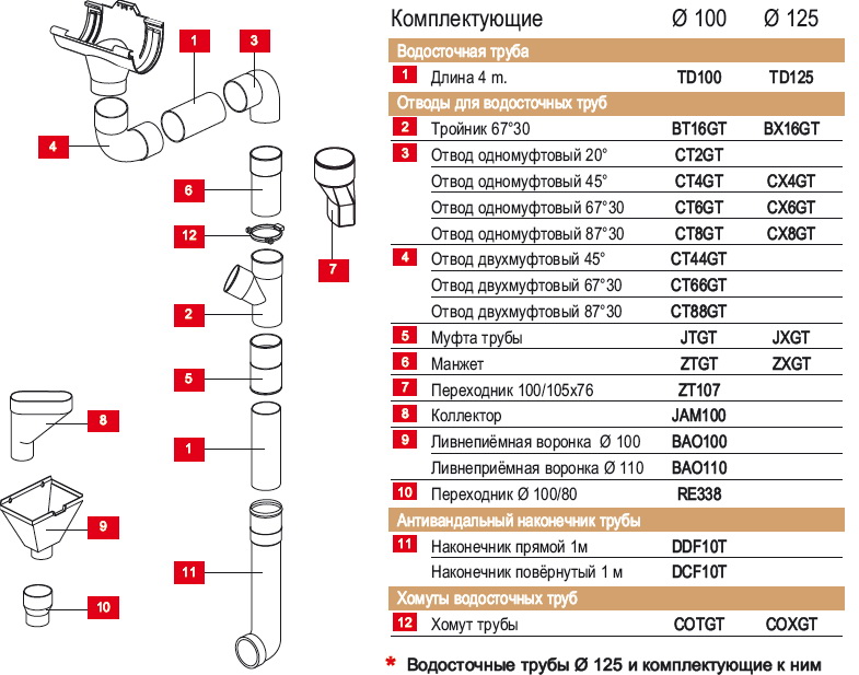 - Водосточная система из ПВХ с добавлением оксида-титана, клеевое соединение, применяется в промышленном строительстве с желобом классической формы.