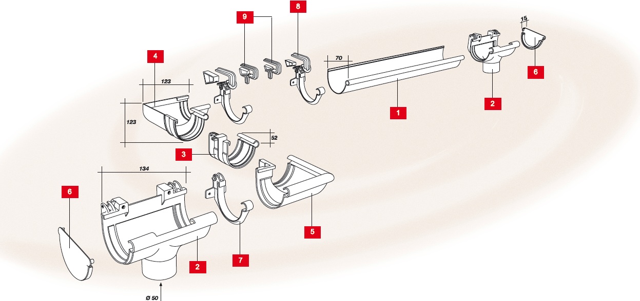 - Водосточная система из ПВХ с добавлением оксида-титана, на резиновых уплотнителях, применяется при обслуживании кровель с максимальной площадью поверхности (беседки, козырьки)